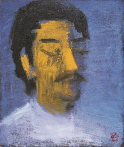 中间好意思术馆三楼展厅进口处,赵文量1981年的自画像与被画进东说念主像中的杨雨澍(赵文量,《青铜》,1980年)并置而立,一大一小,显出一种玄机的呼应与节拍——前者以疲倦却暗藏力气的眼神斜向不雅者,颧骨处两笔似刻着岁月萍踪;后者用粗黑综合勾画自己,巧用黄绿蓝配色呈现出立体光影,粗粝的线条里怀抱着倔强。