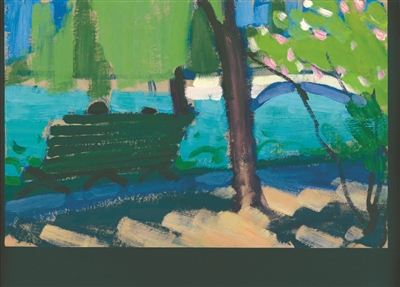 杨雨澍所绘的京城即景令东说念主印象真切。从玉渊潭公园一隅,到北京动物园的行说念树,万般质朴、等闲的不雅察视角与唾手涂鸦,都予以咱们从熟识之处挖掘出惊喜、密匝匝涌上心头的愉悦。尤为心爱《紫竹院》,光影与枝叶变成默契的斜度,仿佛定格于公园溜达不经意一溜时捕捉到的动态。长凳后并肩而坐的东说念主影,也给画面增添了几分“但少闲东说念主”的情味。
