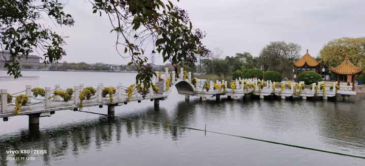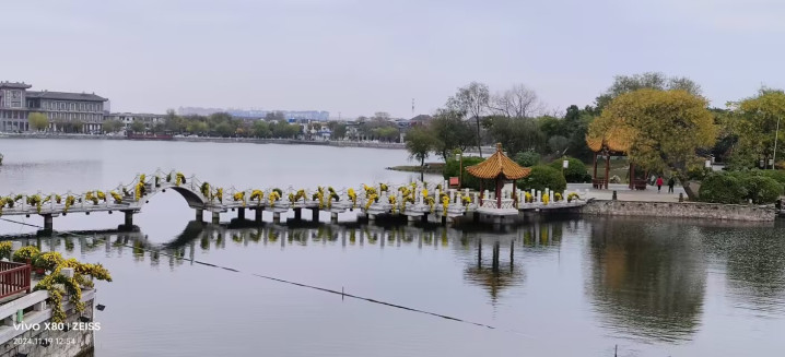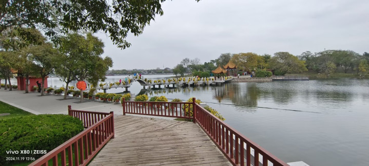在行将作别之际,我再度路过玉带桥。桥下,湖水悠悠流淌,似一位身手深湛的画师,将龙亭与天外的倒影轻轻揉碎,随后又小巧地拼合起来,像是在创作一幅幻化莫测的梦幻画卷。